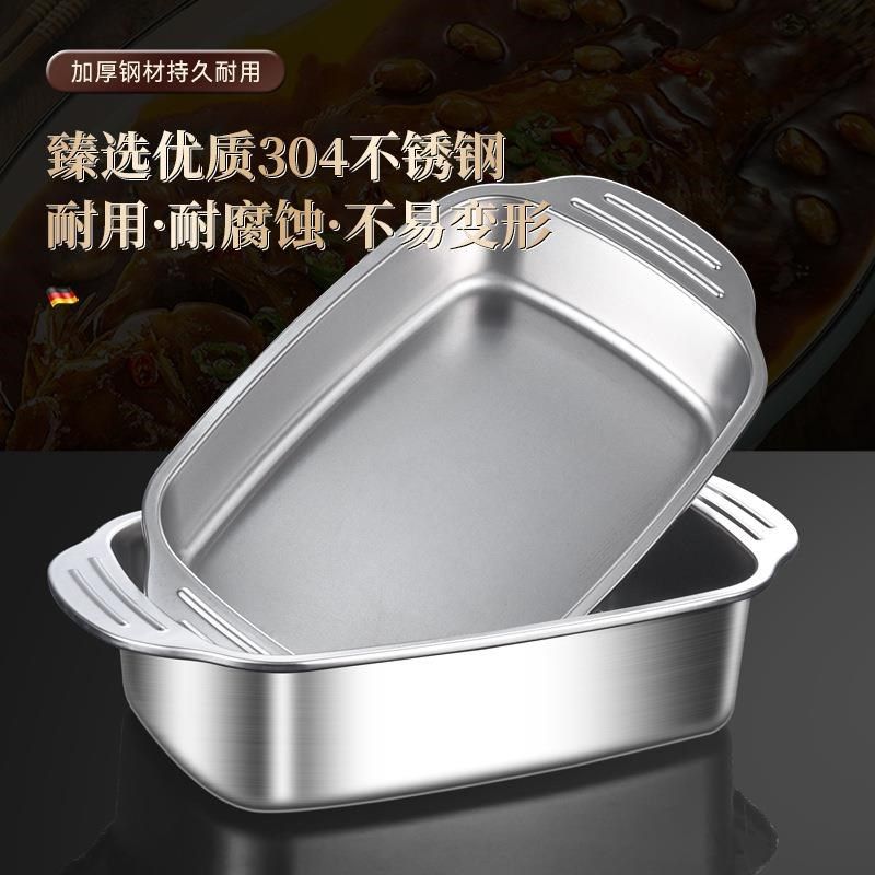 烤鱼盘304不锈钢长方形盘子家用深盘烧烤盘电磁炉盘商用烘焙长盘