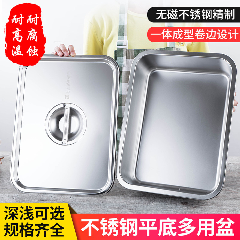 304托盘不锈钢长方形盘子平底蒸盘铁油炸盆盒卤菜盆带盖加深加厚