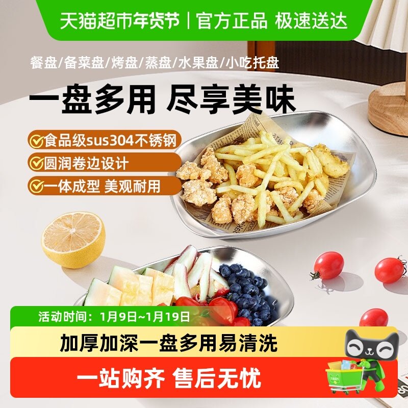 鱼盘不锈钢蒸鱼专用盘子家用菜盘碟子加厚椭圆长方形大号餐盘托盘