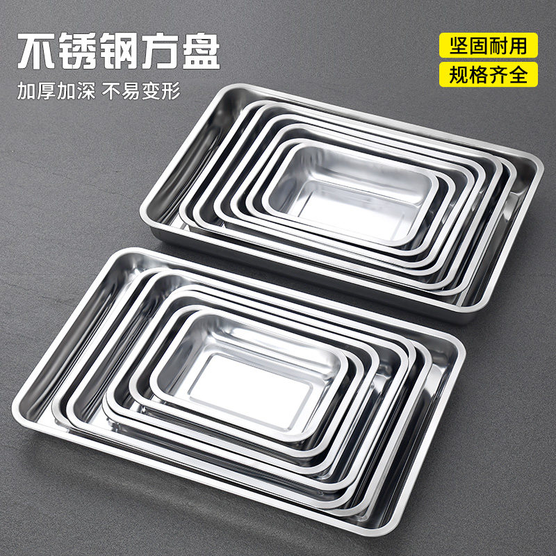 加厚不锈钢方盘多用长方形盘子平底盘凉皮盘蒸糕盘烤盘鸭脖熟食盘