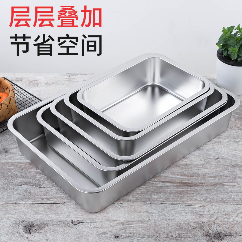 正304纯不锈钢长方形盘子蒸饭柜盘食堂菜盘茶水加厚方盆深浅托盘