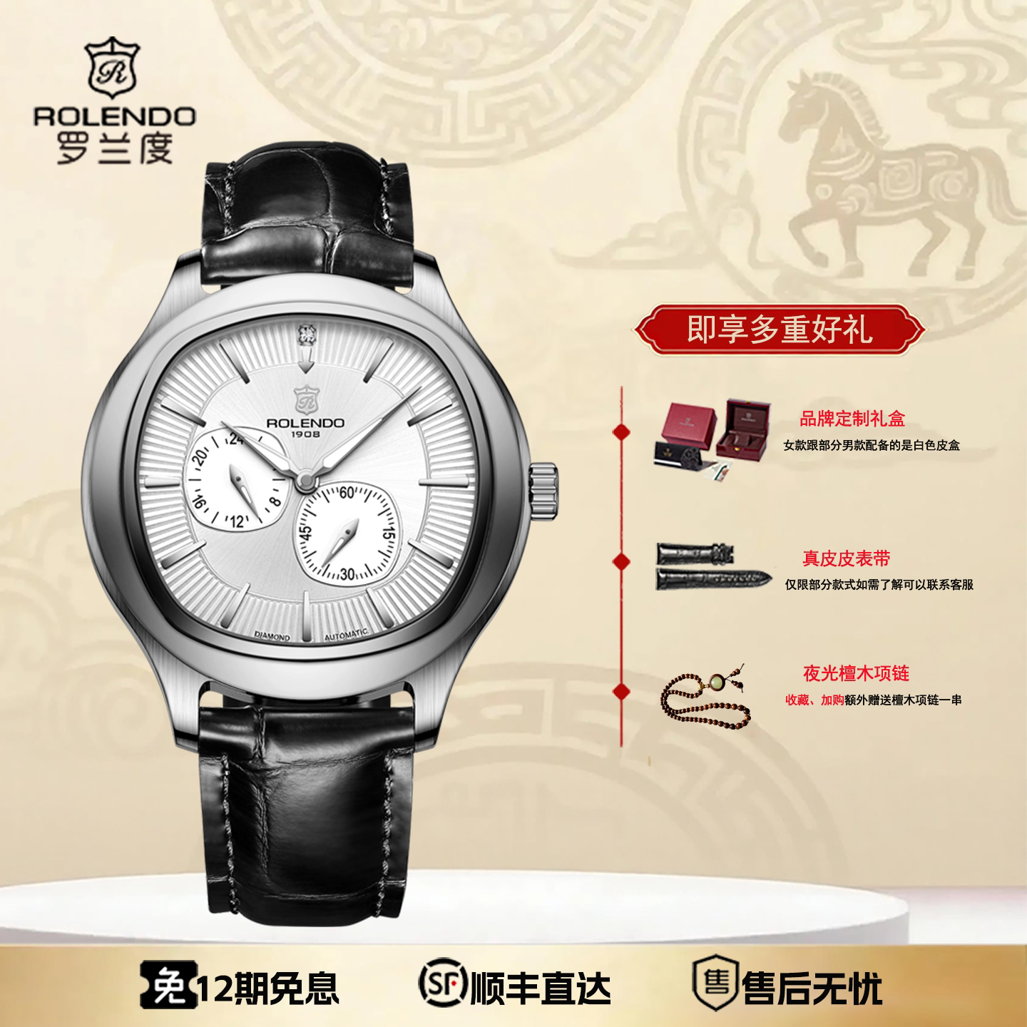 罗兰度正品男士全自动机械表休闲风夜光防水气质男表真钻商务送礼