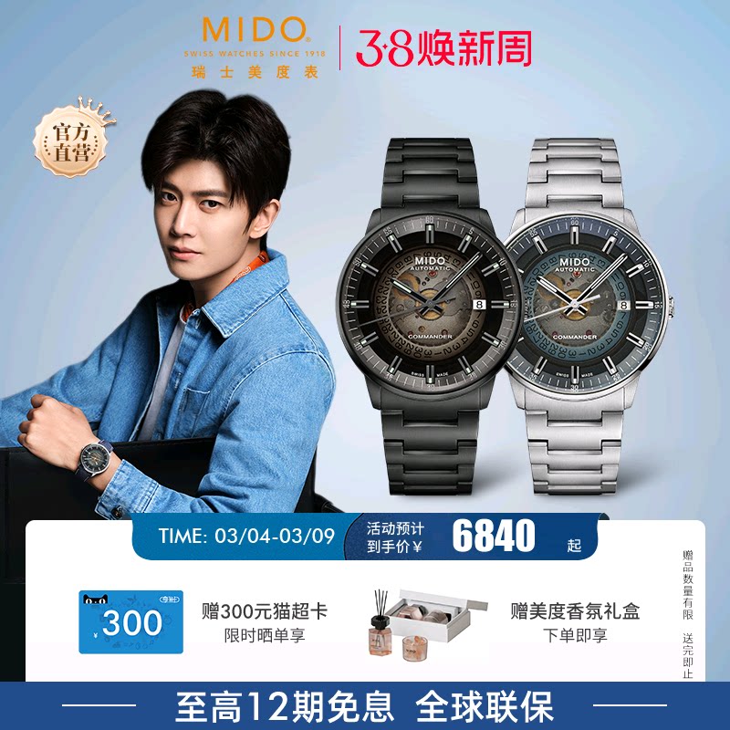 Mido美度男表指挥官幻影自动机械表渐变半透夜光男士腕表生日礼物