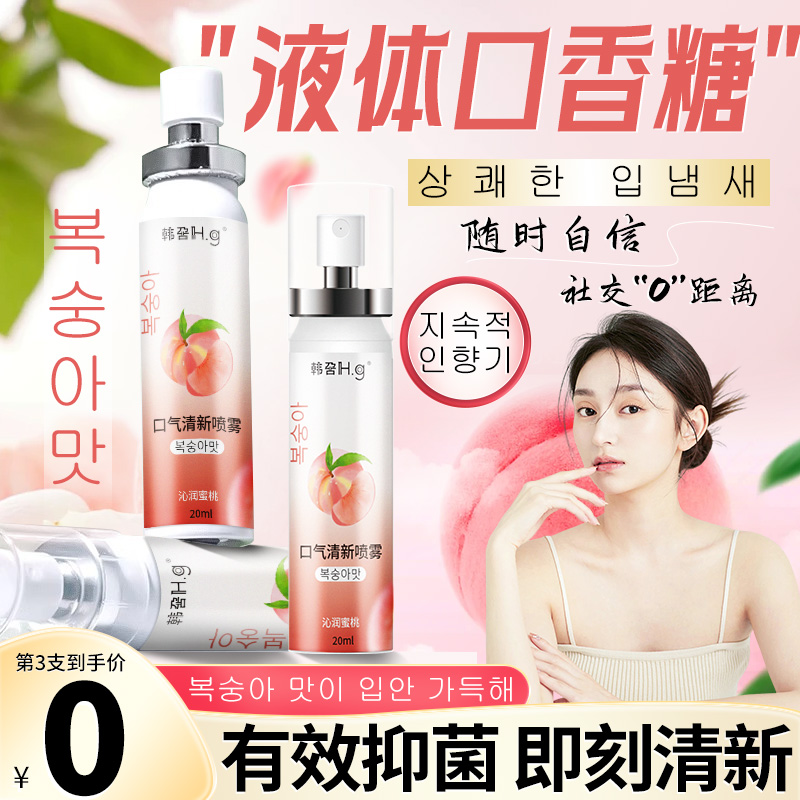 【接吻神器】水蜜桃口气清新喷雾口腔清新剂持久口喷去除口臭神器