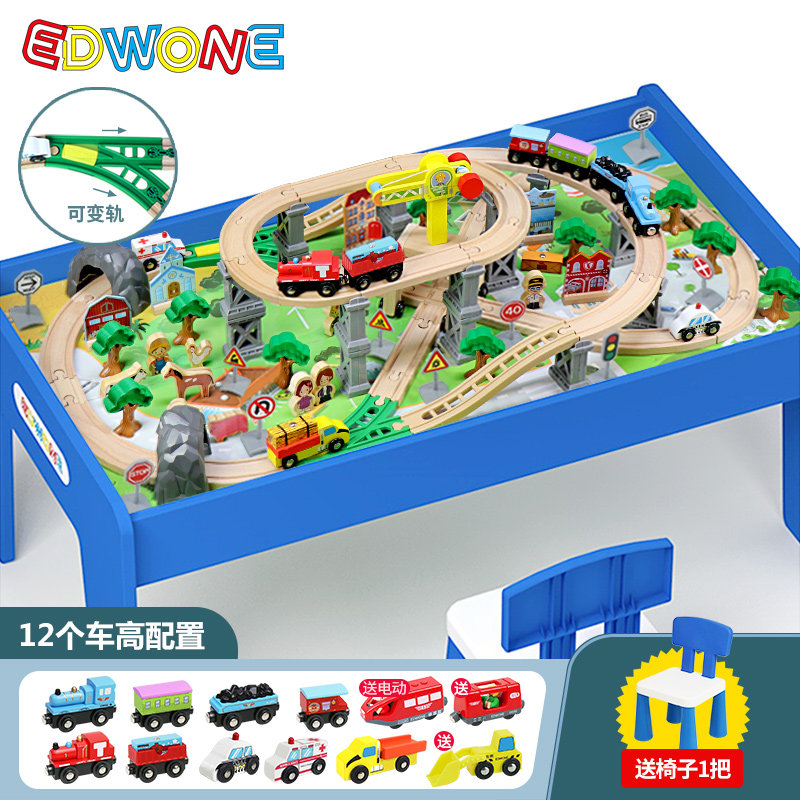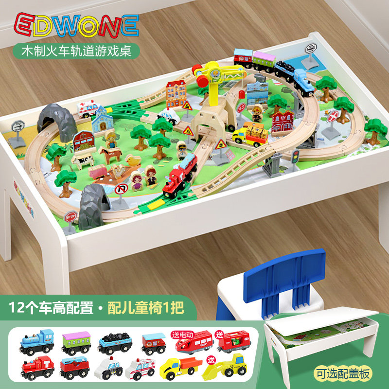 EDWONE木质轨道遥控火车轨道车玩具多功能游戏桌儿童玩具桌男孩车