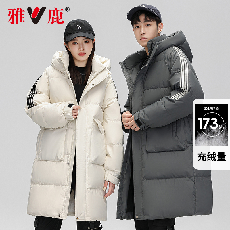雅鹿情侣男女同款2025年冬季新款连帽中长款羽绒服加厚保暖外套潮
