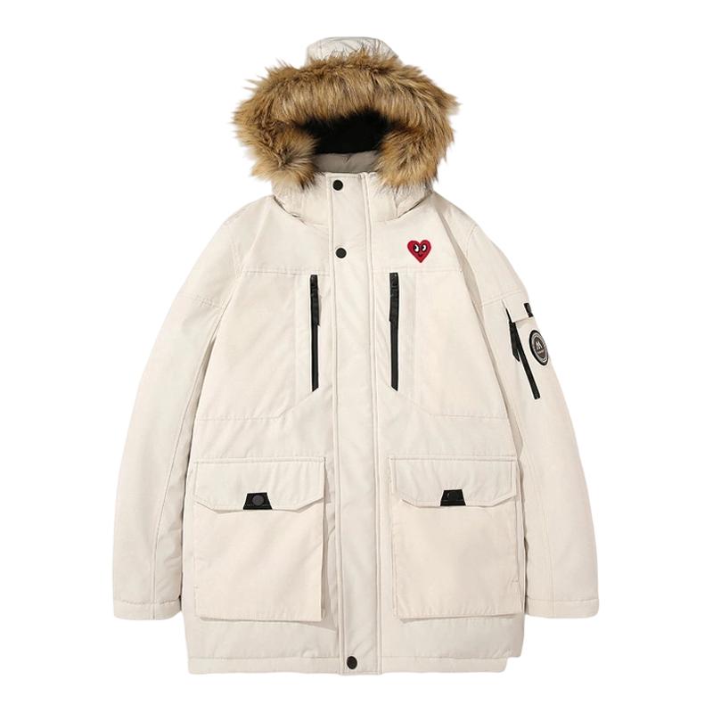 羽小白户外工装情侣羽绒服女派克服男中长款加厚外套冬休闲大毛领