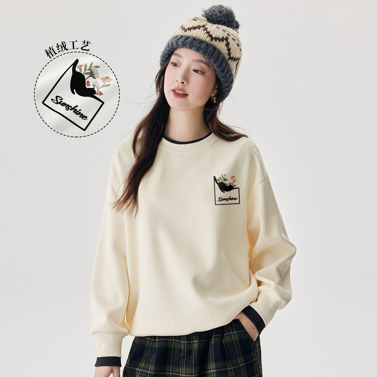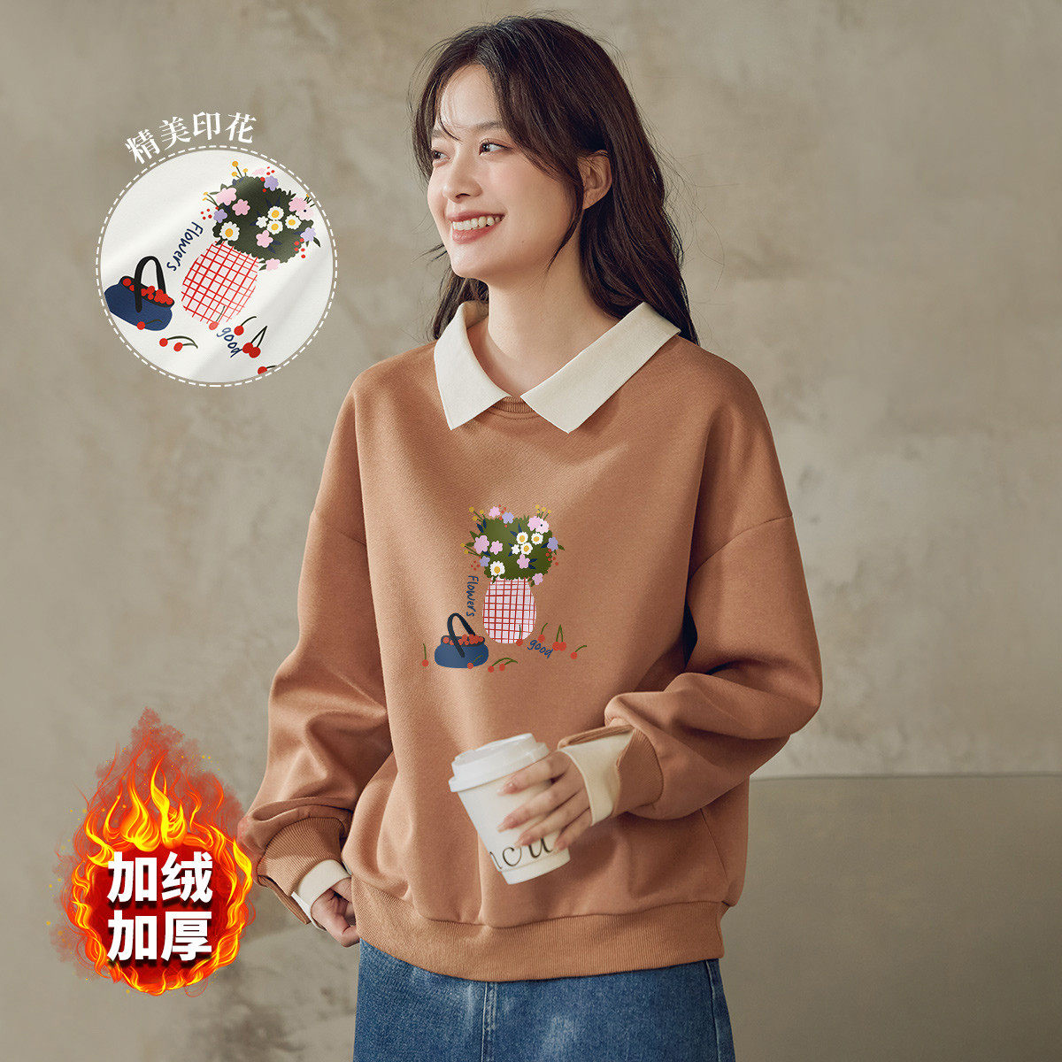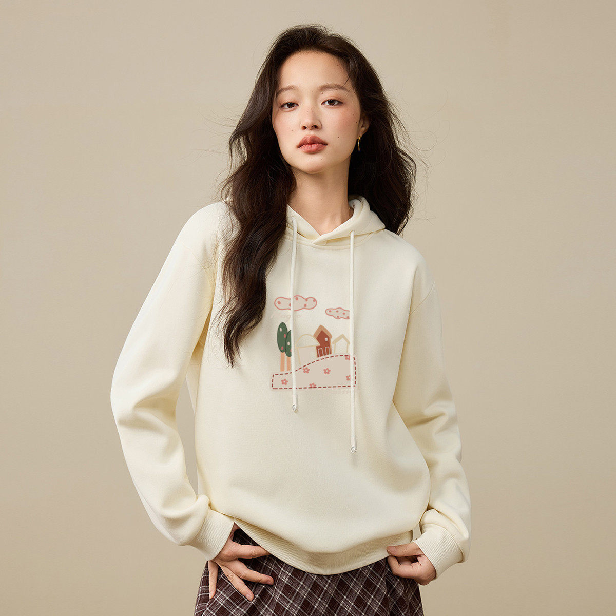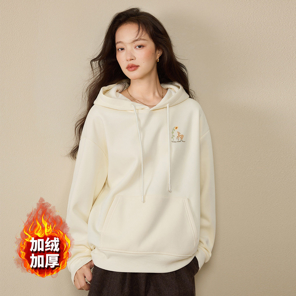 茵曼2025冬季新款加绒保暖长袖卫衣外套女连帽宽松显瘦百搭休闲