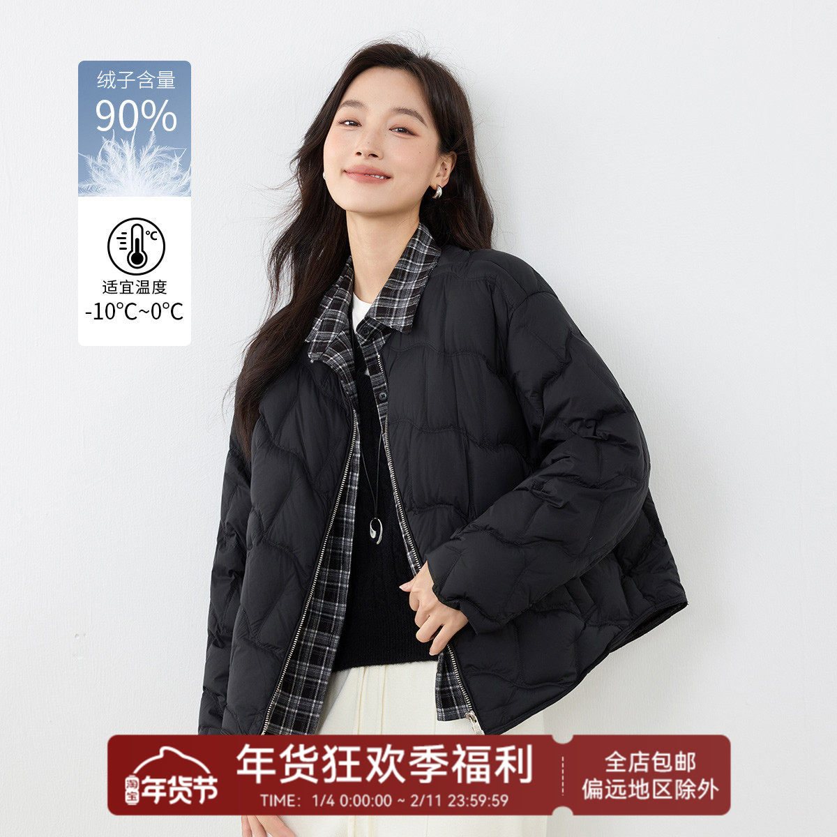 茵曼2025冬季新款长袖短款鸭绒羽绒服女上衣宽松保暖翻领轻薄外套