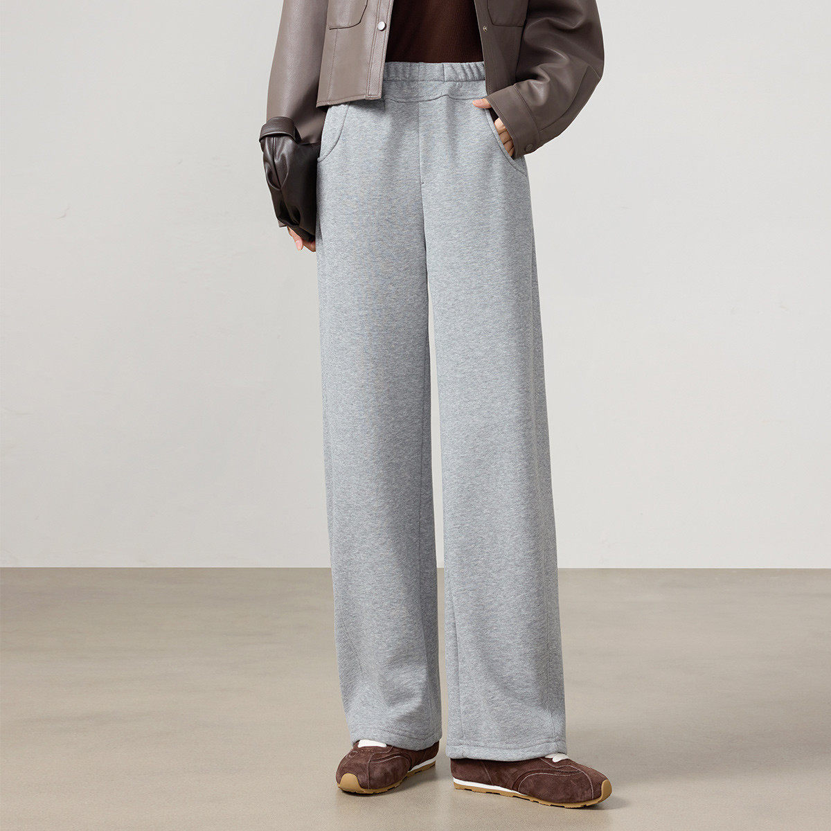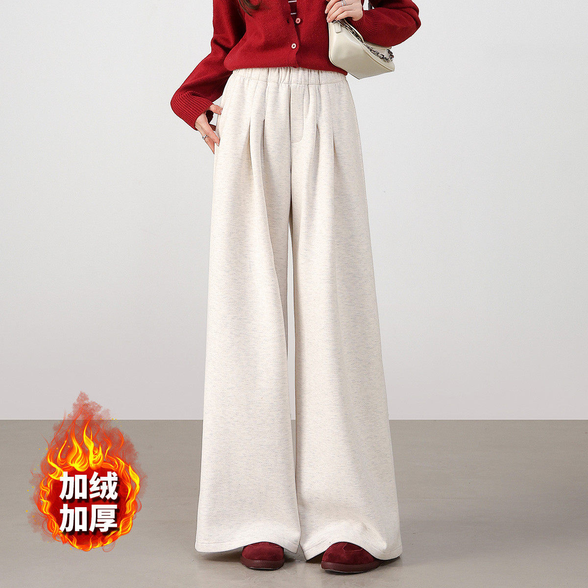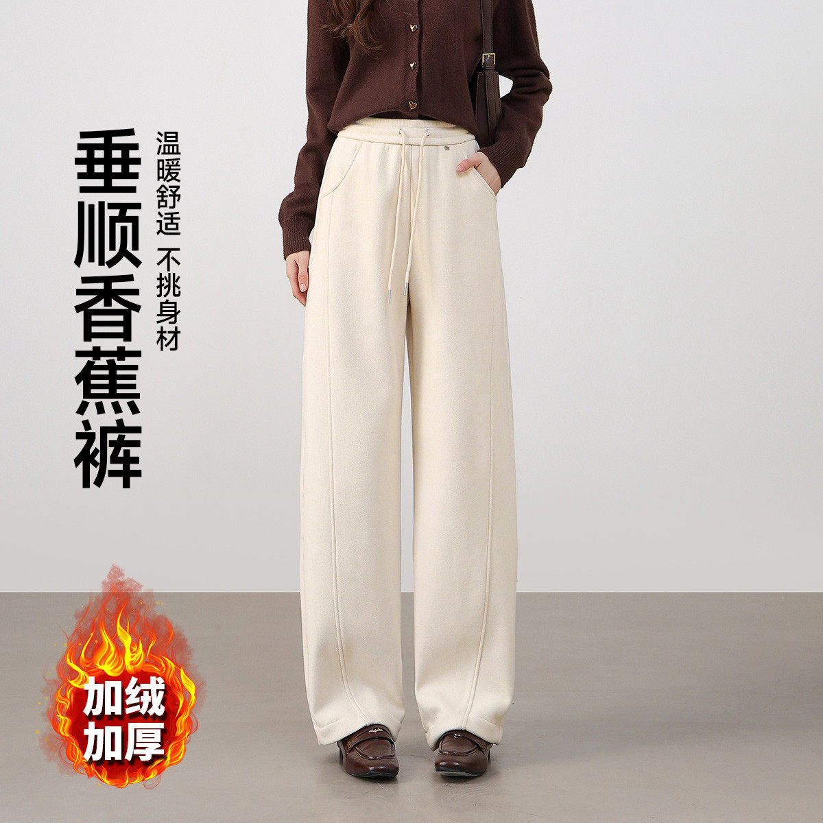 茵曼2025冬季新款加绒加厚保暖休闲裤女宽松直筒显瘦高腰垂感阔腿