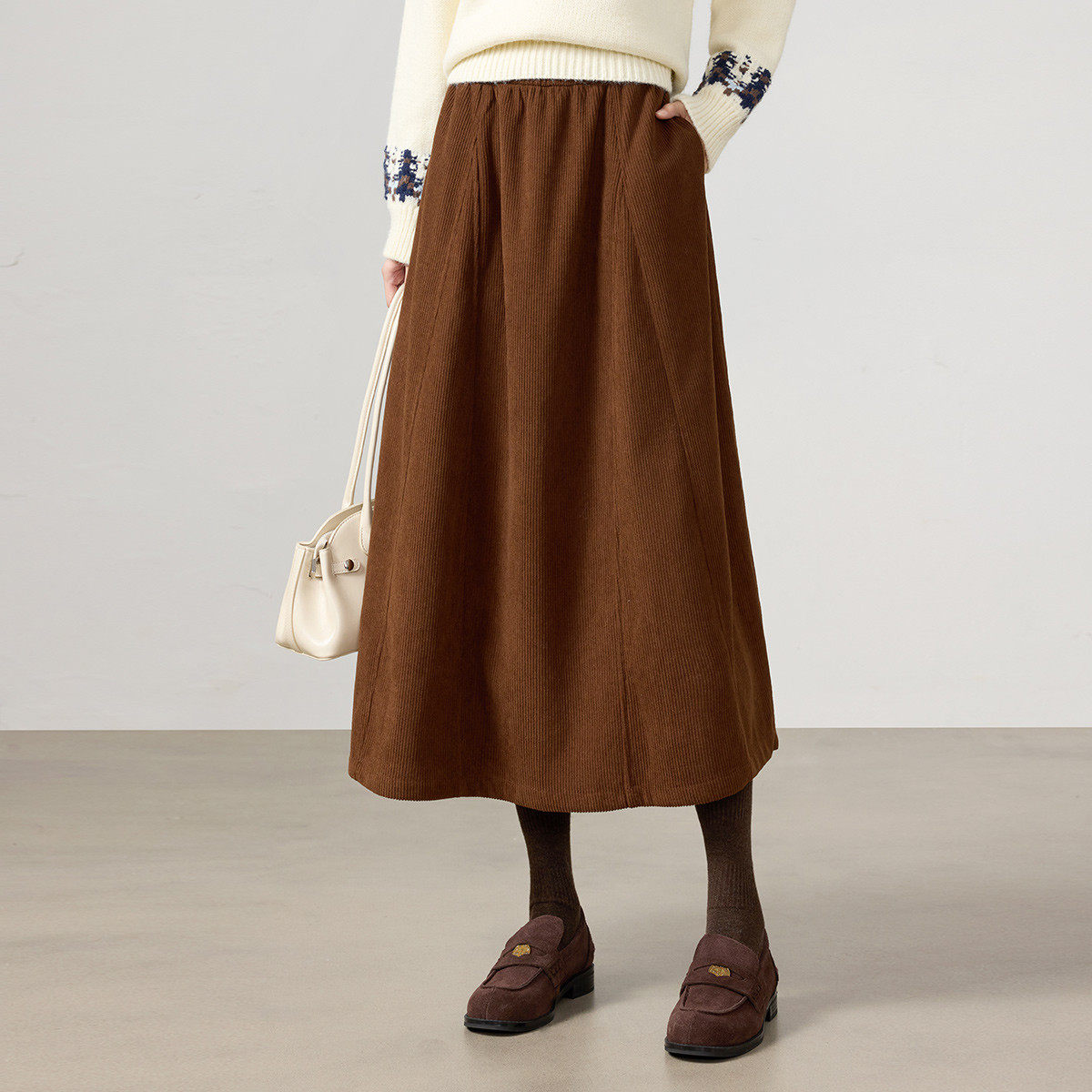 茵曼2025冬季新款中长款复古学院风半身裙女高腰显瘦大摆A字裙