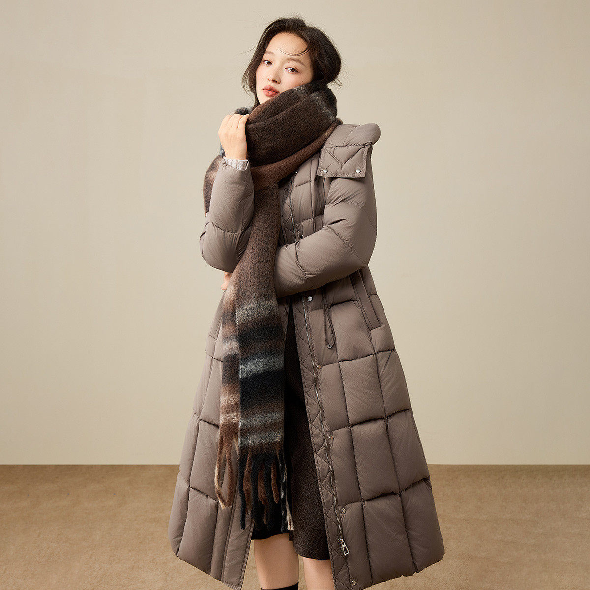 茵曼2025冬季新款中长款加厚保暖鸭绒羽绒服女上衣宽松外套小个子