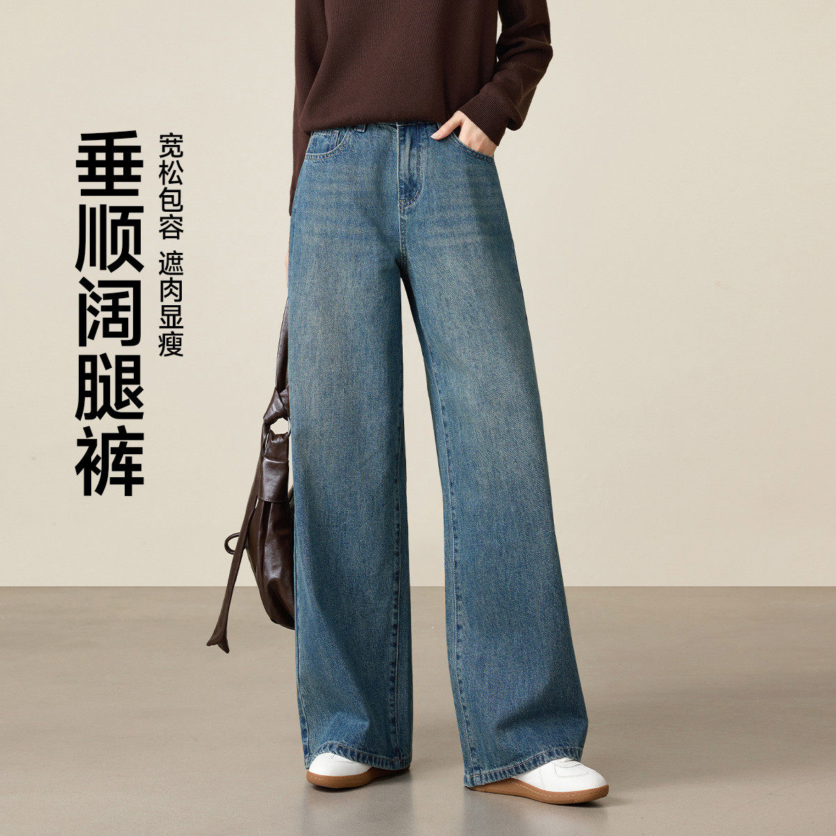 茵曼2026春季新款美式牛仔裤女士宽松直筒高腰显瘦阔腿长裤子垂感