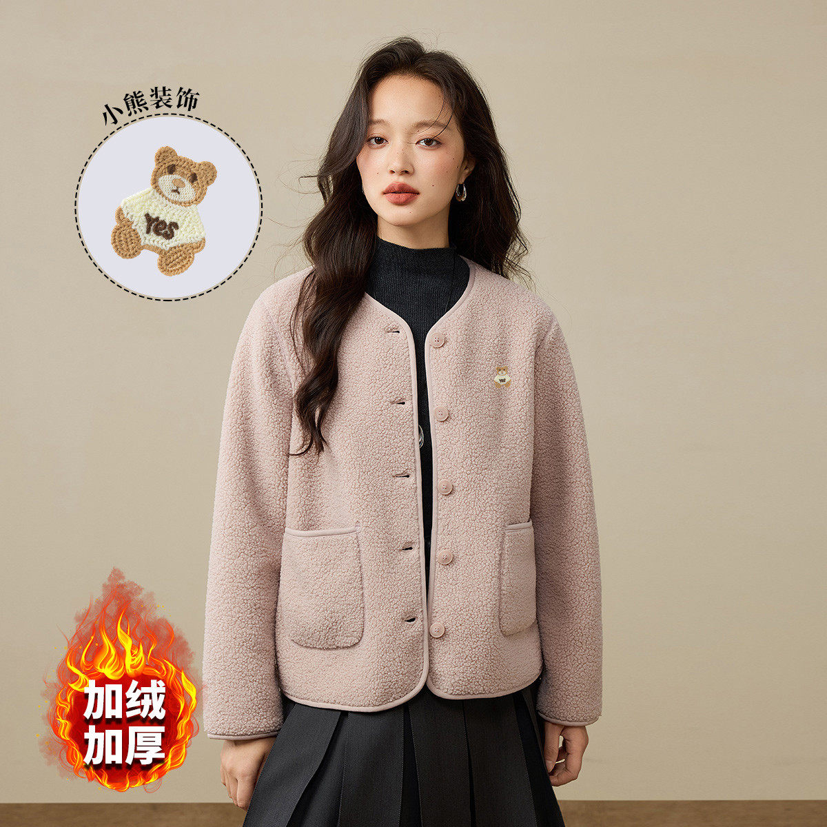 茵曼2025冬季新款加绒加厚保暖法式小香风外套女休闲宽松短款上衣
