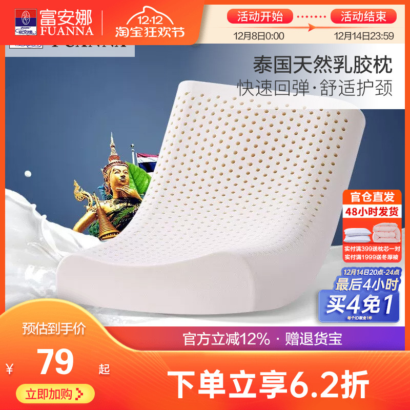 富安娜乳胶枕头正品泰国进口成人护颈椎枕儿童乳胶枕橡胶枕头枕芯