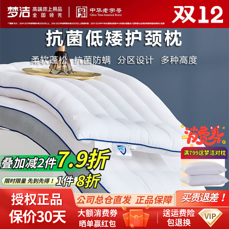 梦洁家纺正品可水洗HS小蓝条低矮护颈立高枕枕头枕芯床品超划算