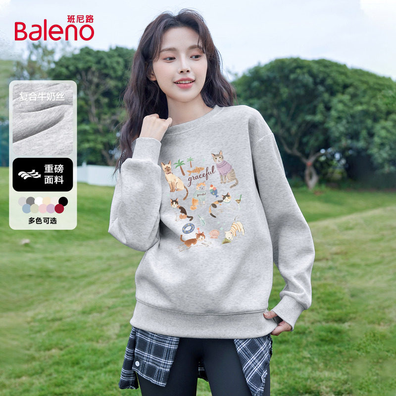 - 宽松卡通卫衣女加绒
