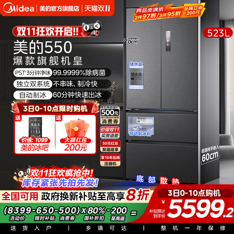 - 冰箱三门风冷无霜