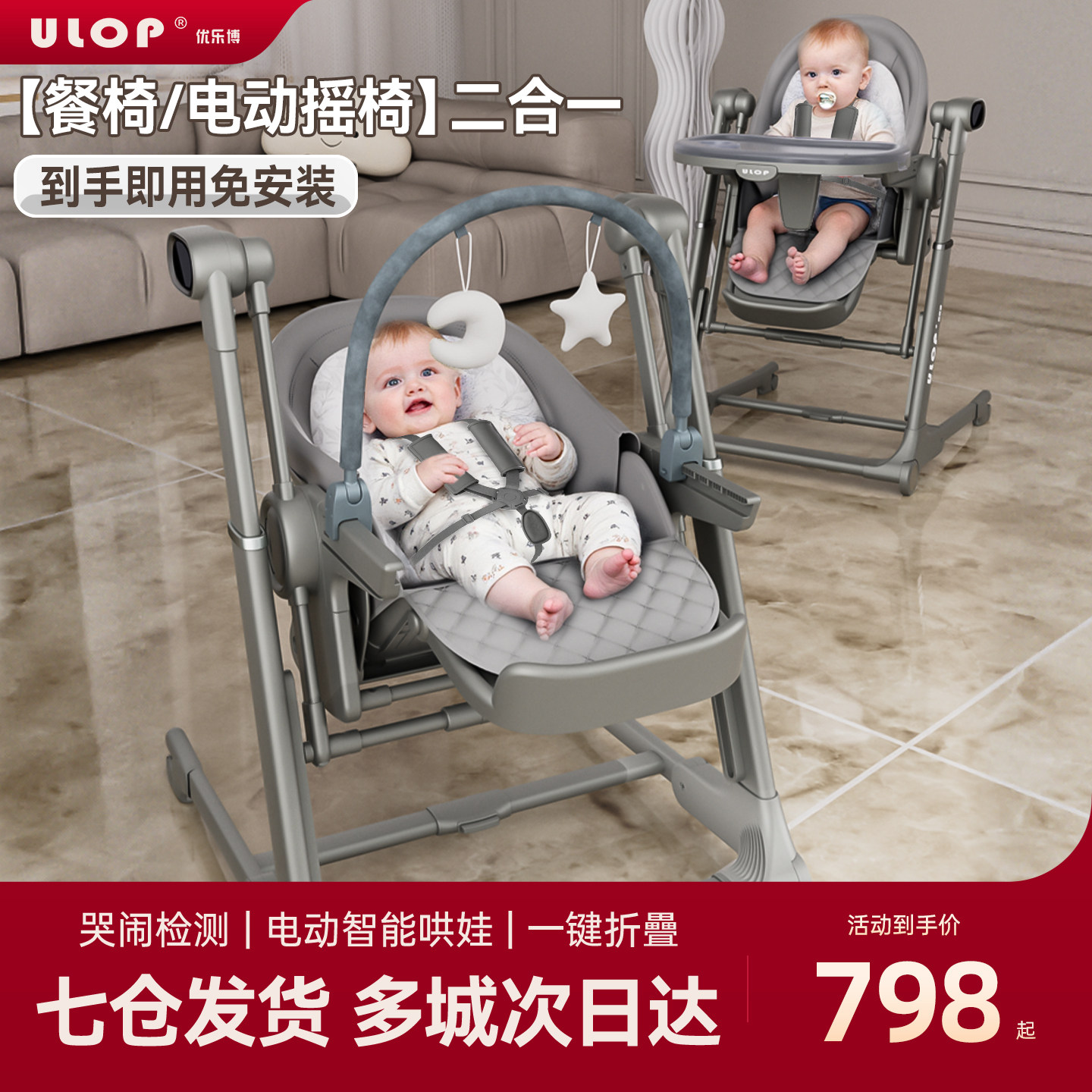 ULOP优乐博宝宝电动摇椅餐椅二合一婴儿多功能躺睡神器家用餐桌椅