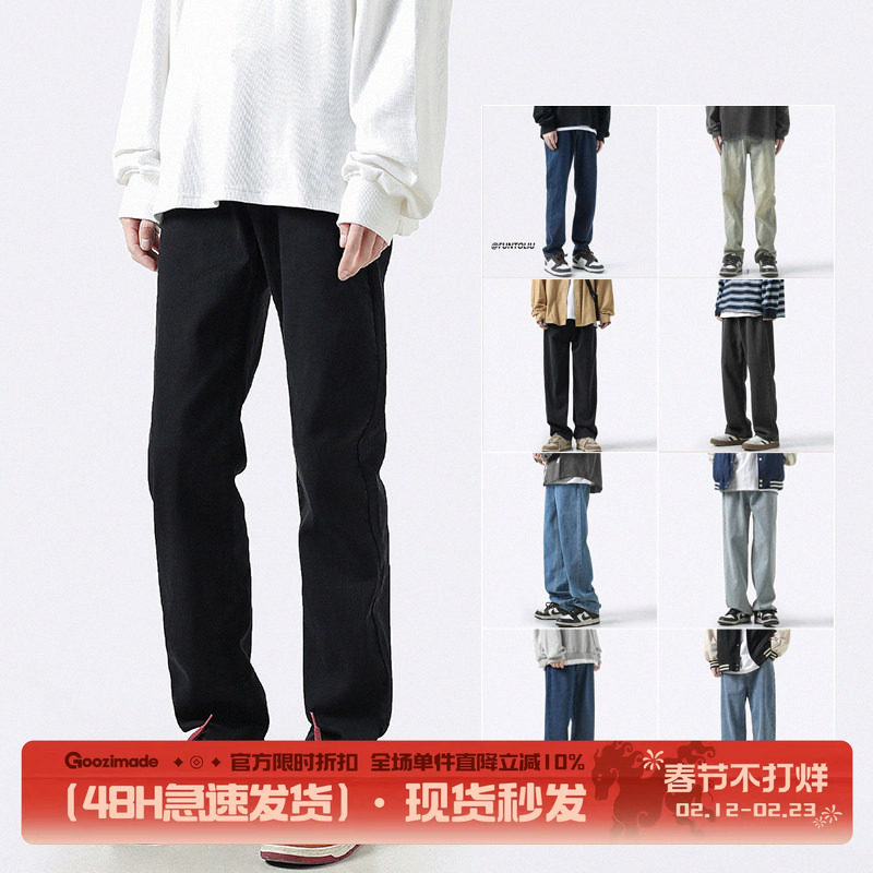 - 牛仔裤男小直筒 长裤