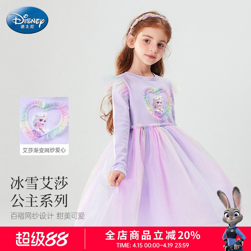 迪士尼童装艾莎公主裙女童连衣裙2026新款春季网纱裙儿童裙子女夏