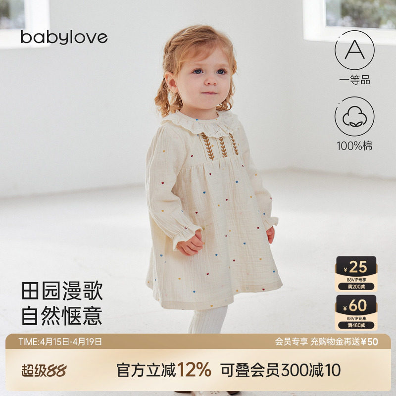 babylove女宝宝连衣裙春秋纱布裙子婴幼儿甜美公主裙高颜值外出服