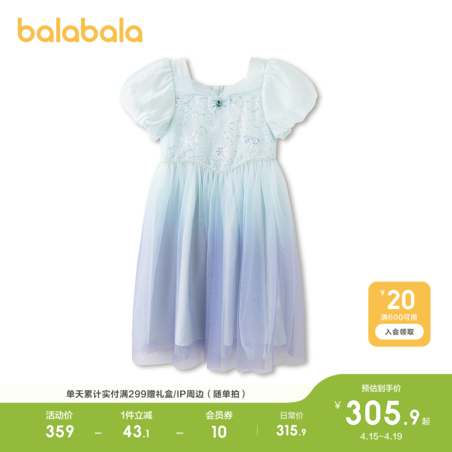 【迪士尼IP】巴拉巴拉童装女童公主裙宝宝连衣裙2026夏新款网纱裙