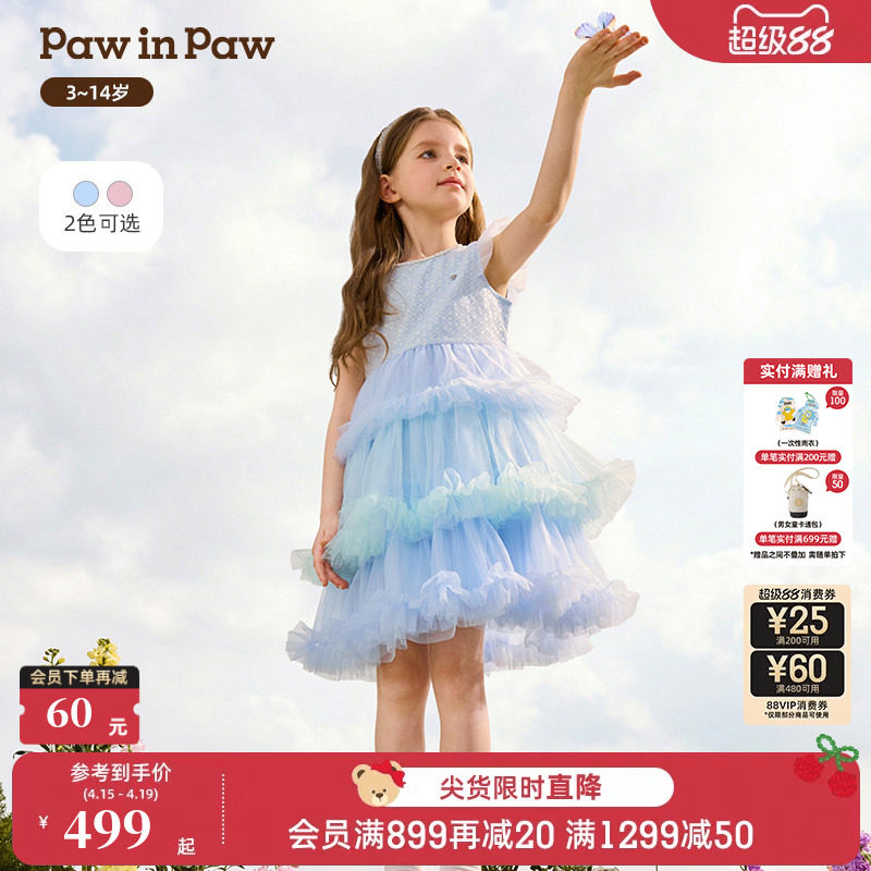 PawinPaw卡通小熊童装26年春夏季新款女童儿童网纱甜美公主连衣裙