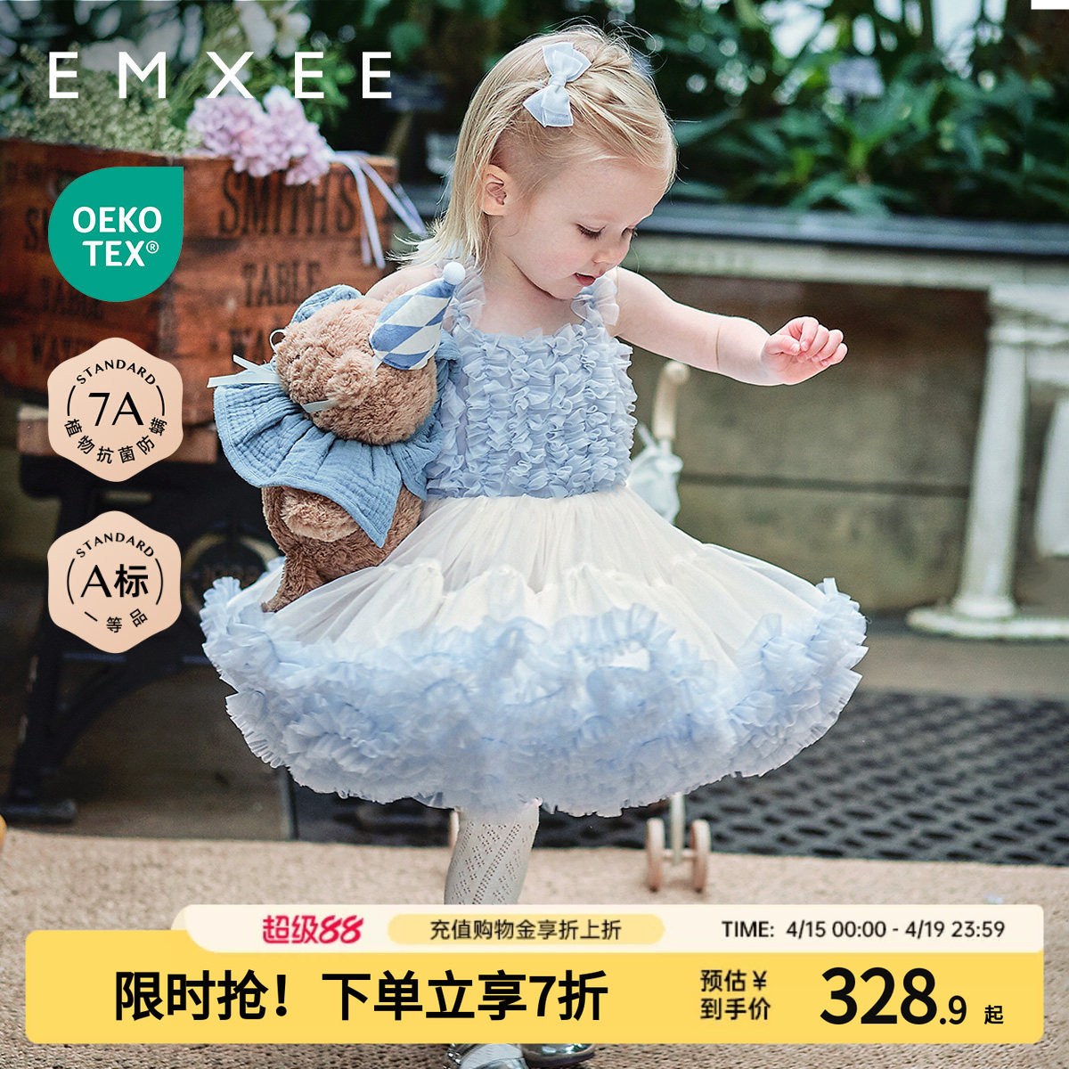 英氏儿童裙子夏季透气网纱百褶蓬蓬礼服公主裙夏装女童连衣裙洋气