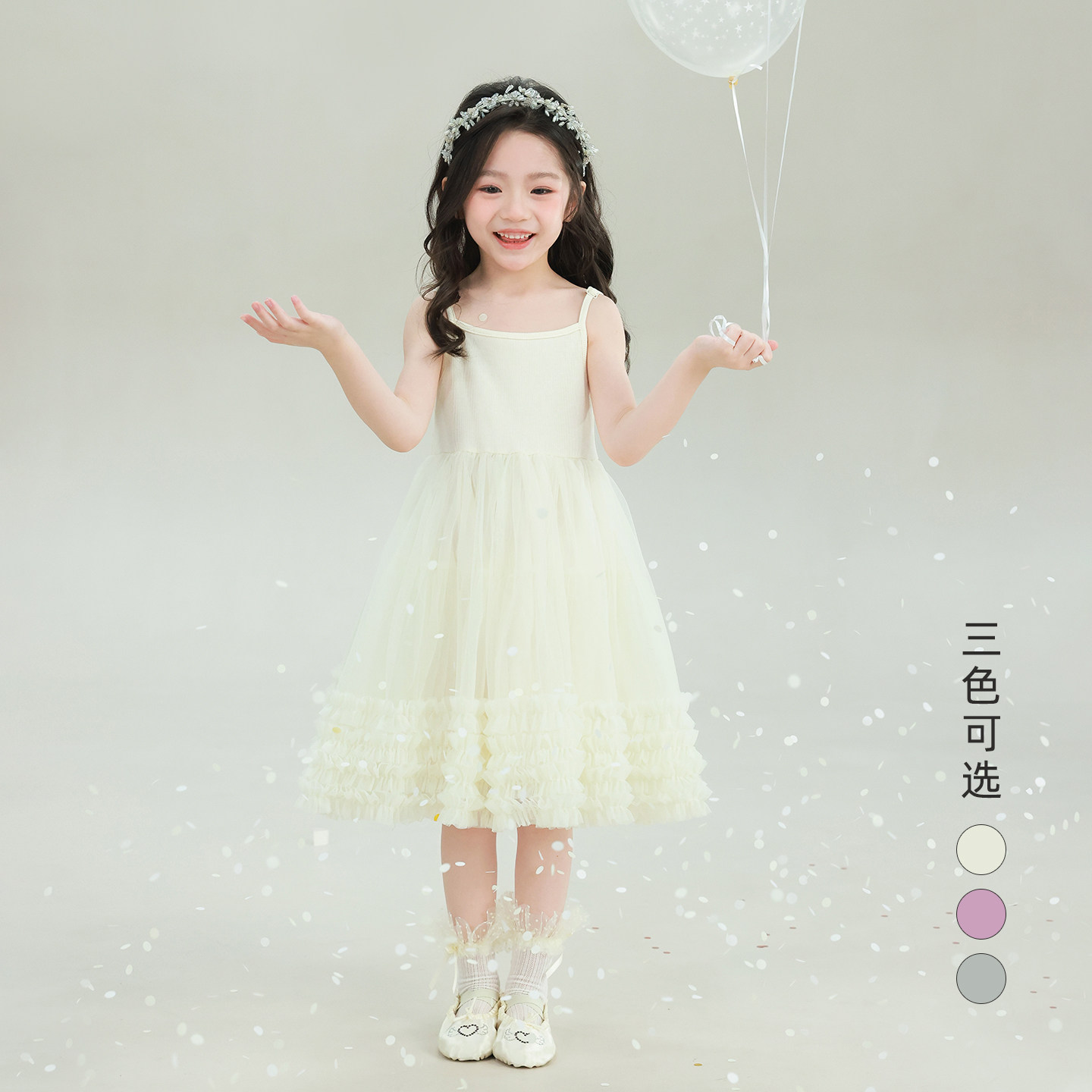 女童连衣裙夏季生日公主裙幼儿园毕业表演小女孩网纱背心裙演出服