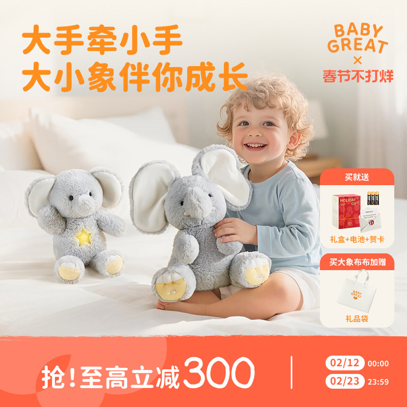 babygreat大象玩偶玩具安抚大小象宝宝儿童周岁新年礼物毛绒礼盒