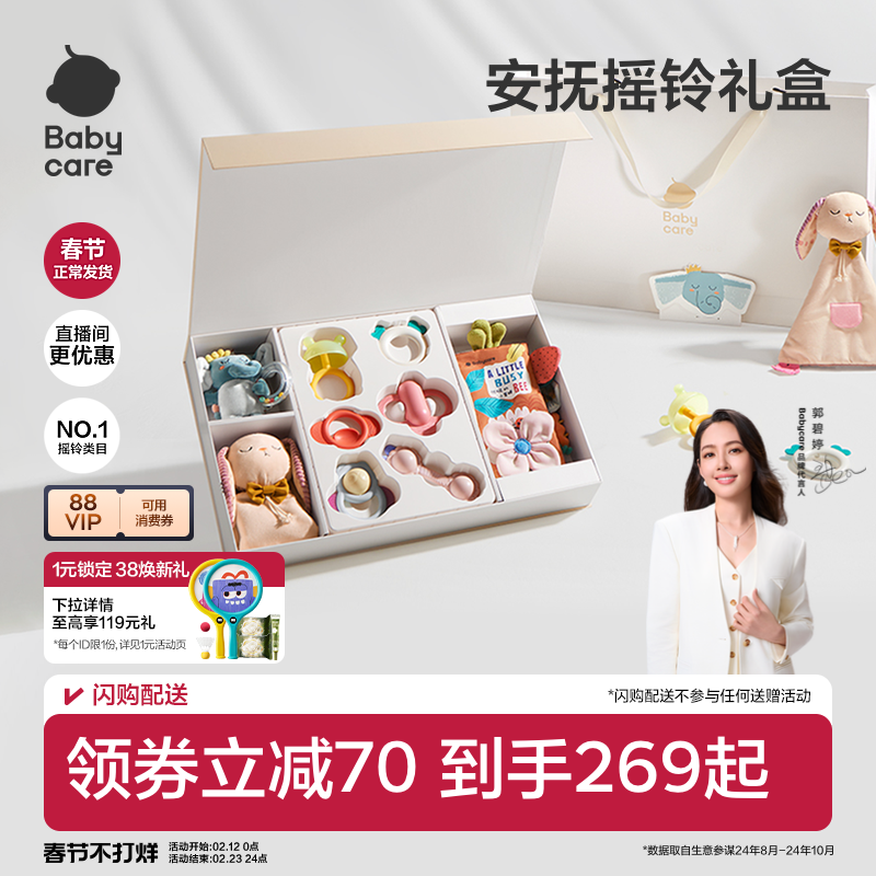 babycare新生婴儿安抚摇铃礼盒见面礼物宝宝出生玩具新年送礼满月