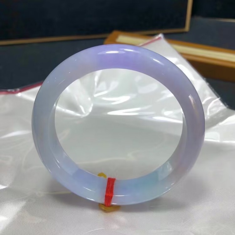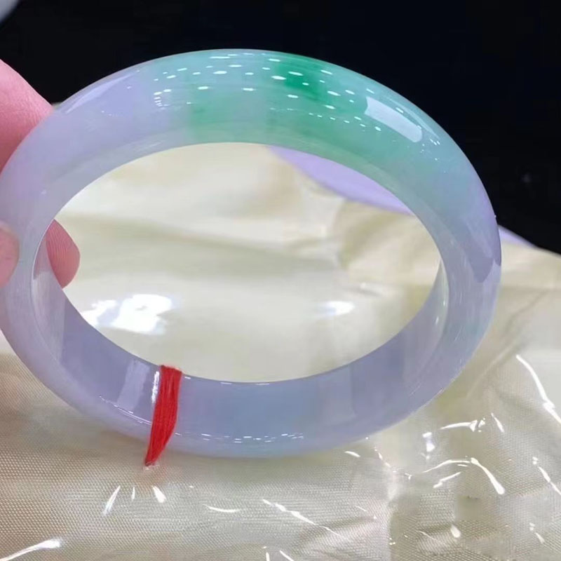 周z六福冰糯种春彩女士镯子缅甸宽条镯浅紫罗兰春带彩翡翠玉手镯