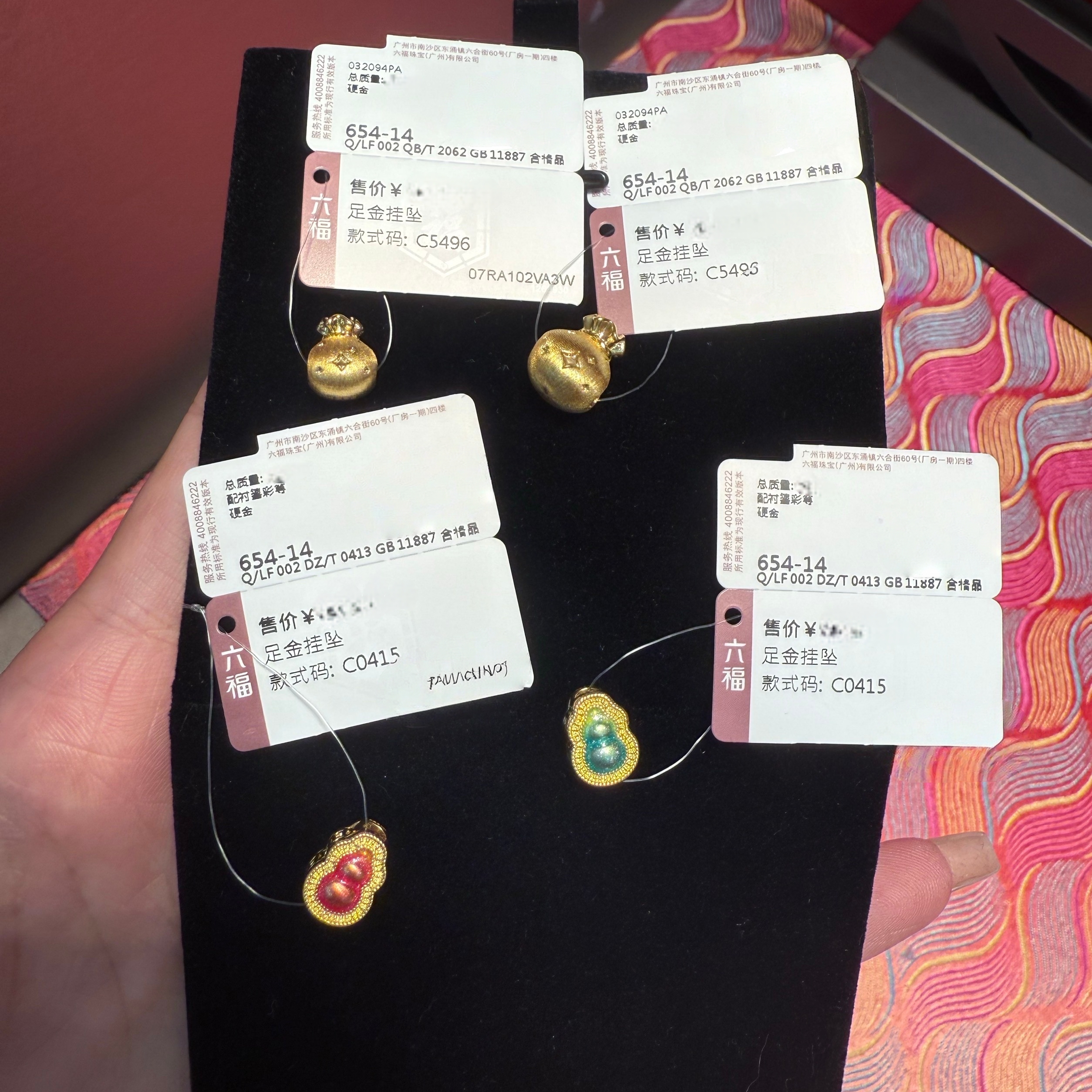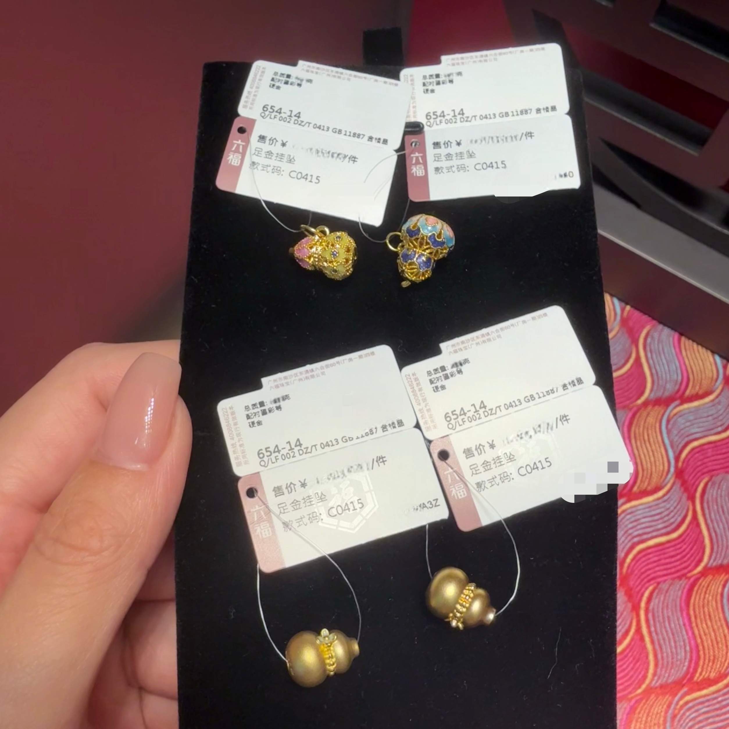 六福珠宝代购 足金鎏彩小葫芦素金福袋黄金吊坠挂坠 新款专柜正品