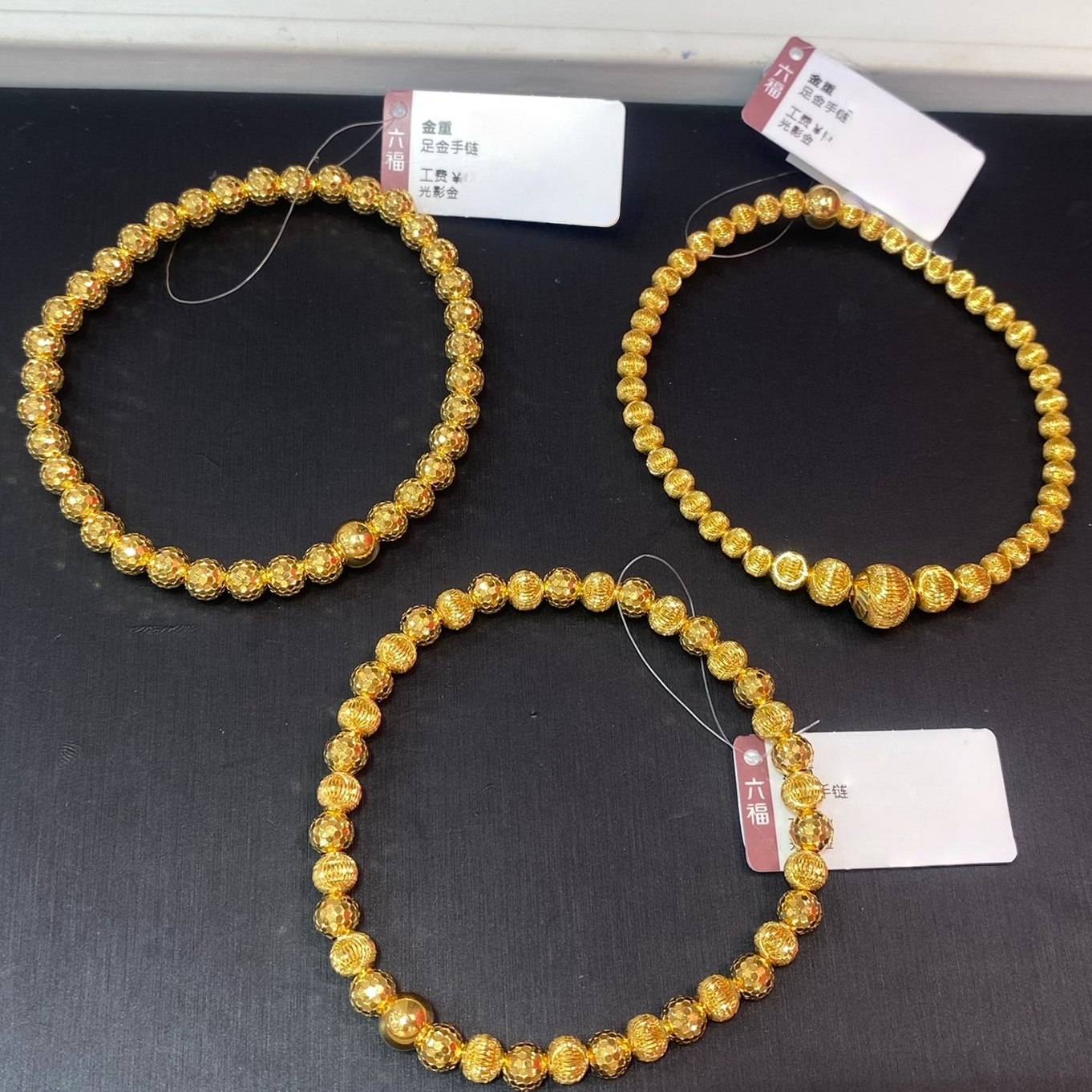 六福珠宝代购 光影金爆闪蹦迪珠足金黄金手链手串 新款专柜正品