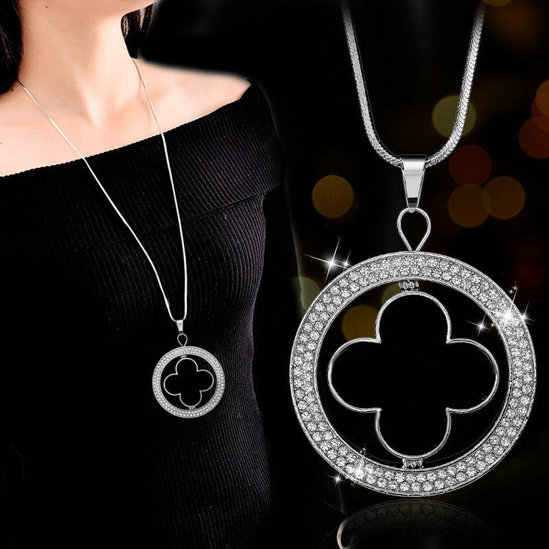 圆形四叶草气质长款女士毛衣链秋冬百搭大气项链日韩时尚简约挂件