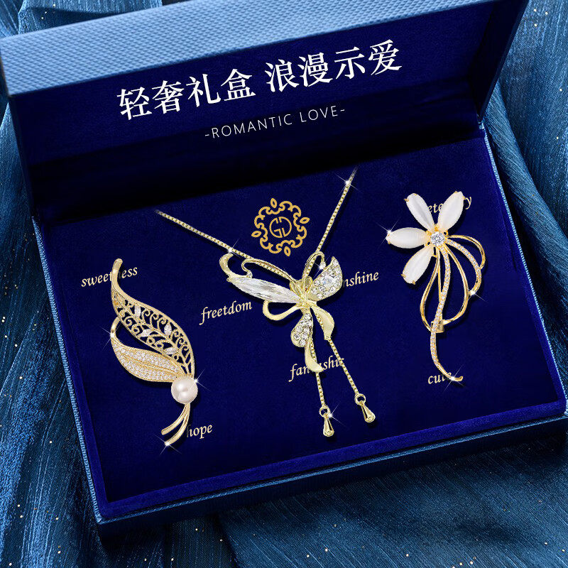 气质胸针高档女士毛衣链套装轻奢礼盒西装胸花长款项链女神节礼物