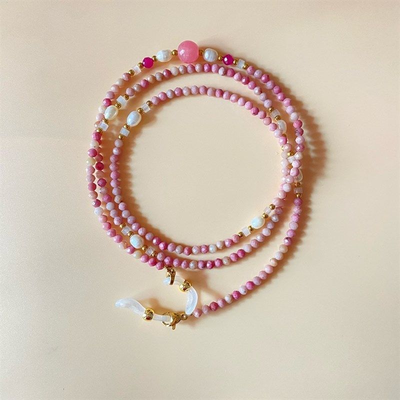天然粉蔷薇眼镜链时尚浪漫女士挂脖项链长款墨镜挂绳百搭眼镜配饰