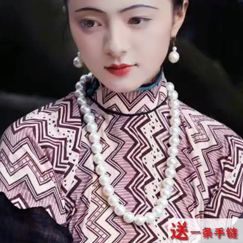 搭配旗袍珍珠项链70cm时尚大珠毛衣链颈链中长款拍照饰品女士132
