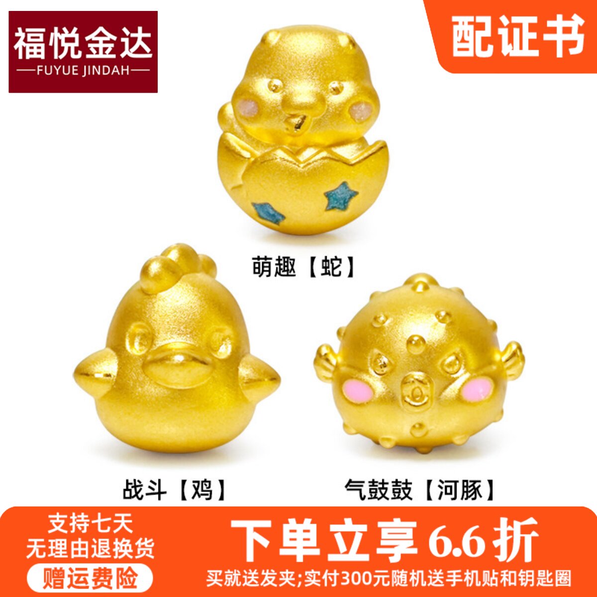 周大福代购 生肖系列牛蛇鸡三合足金黄金转运珠吊坠定价7折R35968