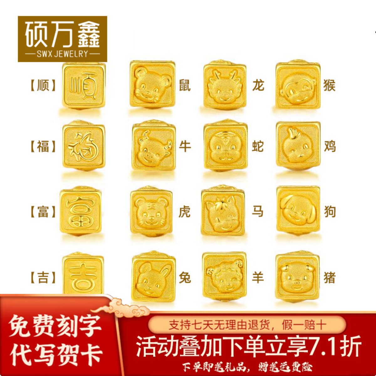999黄金十二生肖手链足金茶杯生肖转运珠本命年龙猴鼠鸡3d硬金