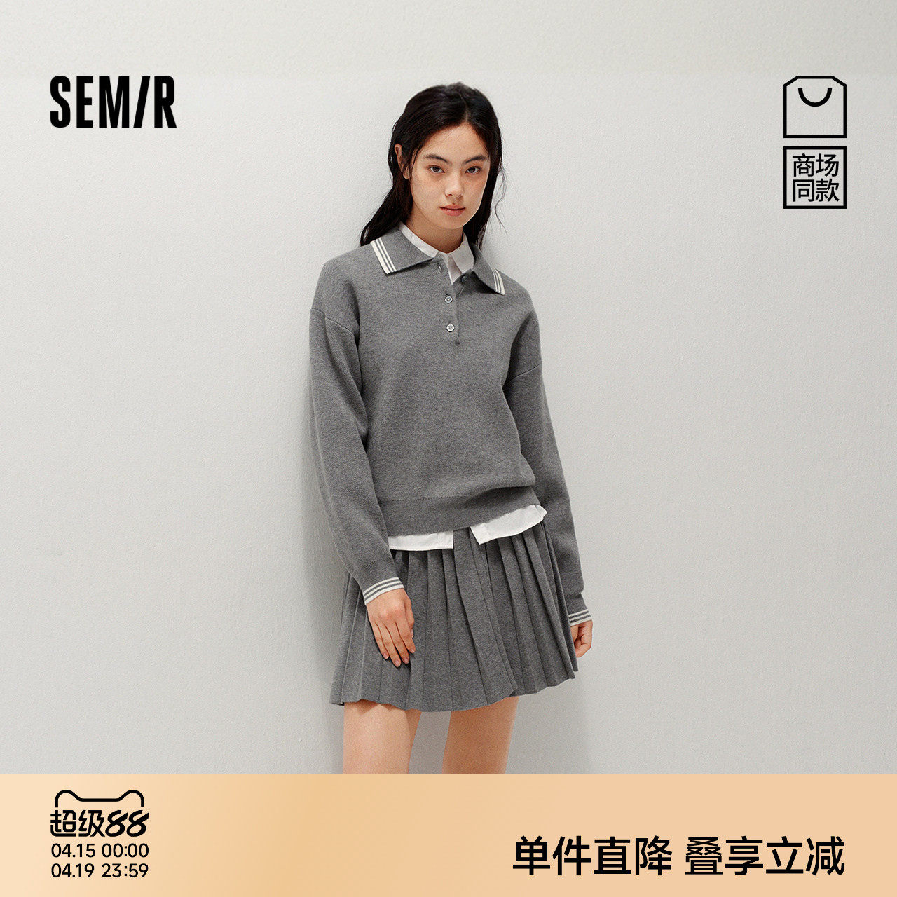 商场同款|森马套装女冬撞色polo衫百褶短裙2025新款学院风两件套