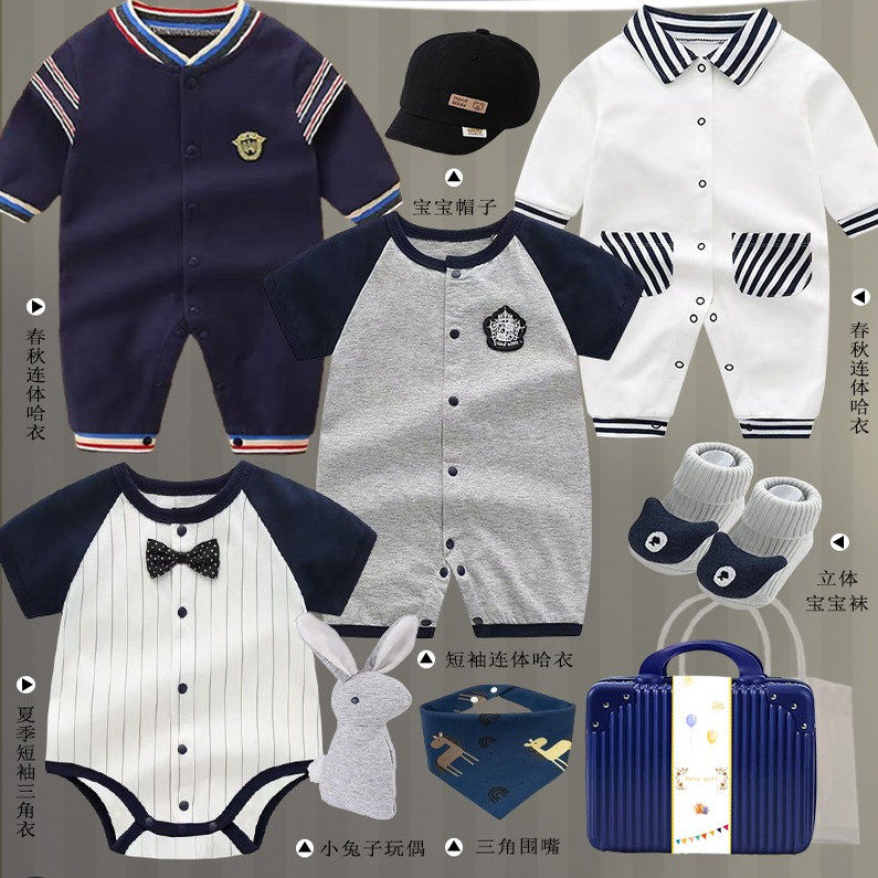 婴儿礼盒学院风格套装新出生男宝宝春夏秋冬季款蓝色满月百天周岁