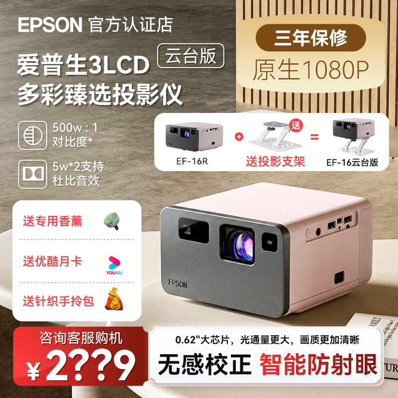 Epson爱普生EF-16R全彩3LCD智能激光投影仪超高清家用卧室客厅护眼1080P多媒体液晶小型投影机便携式迷你云台