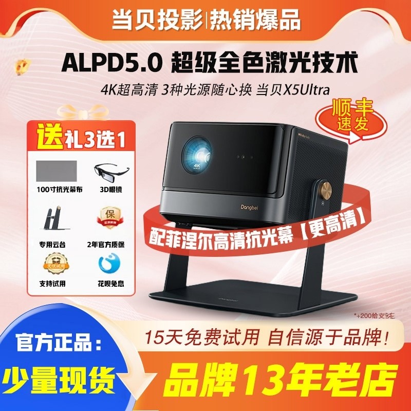 大屏 | 当贝X5Ultra全色激光投影仪家用4K超高清激光电视100寸智能家庭影院白天客厅投影机幕布全套X7ultra