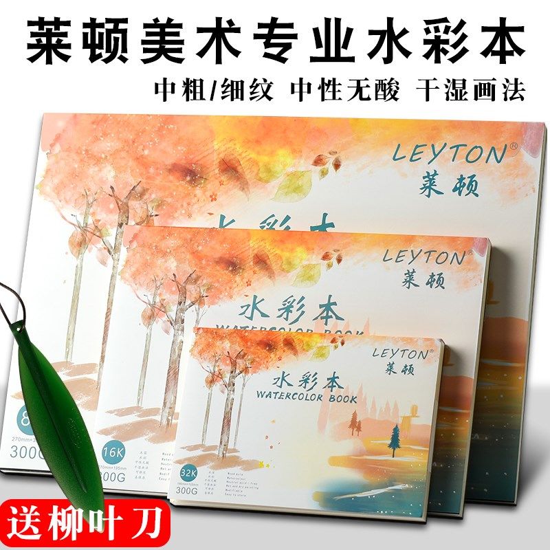 莱顿水彩纸封胶水彩本8k加厚中粗纹300g绘画本32k16k4K细纹全棉浆水彩画专用纸美术生专用空白画画本油画棒纸