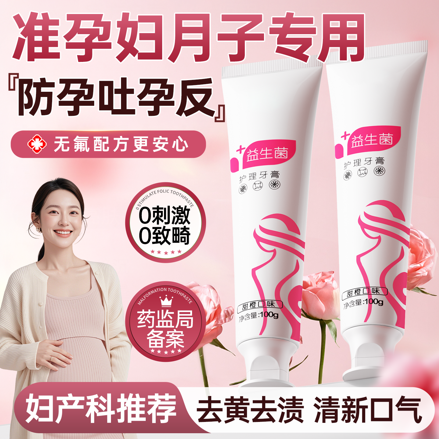 准孕妇牙膏益生菌不含氟月子哺乳期产后可专用去黄去口臭缓解孕吐