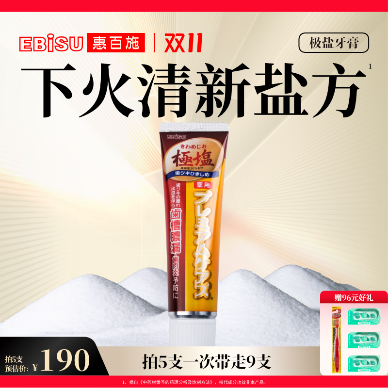 惠百施极盐含氟牙膏官方旗舰店正品清火清洁护龈男女成人孕妇专用