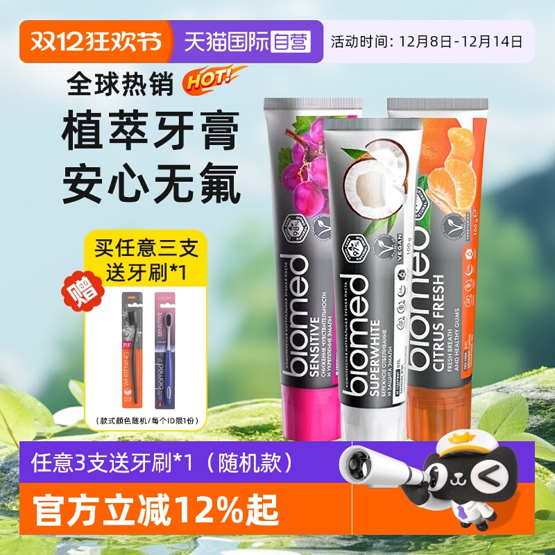 进口biomed不含氟成人孕妇牙膏靓白清新口气去黄减轻口臭官方正品