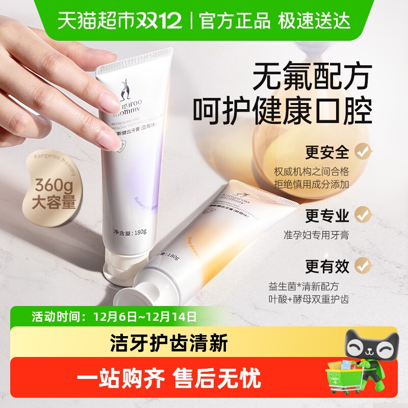 袋鼠妈妈准孕妇牙膏专用清新口气家庭无氟口腔护理套装180g大容量